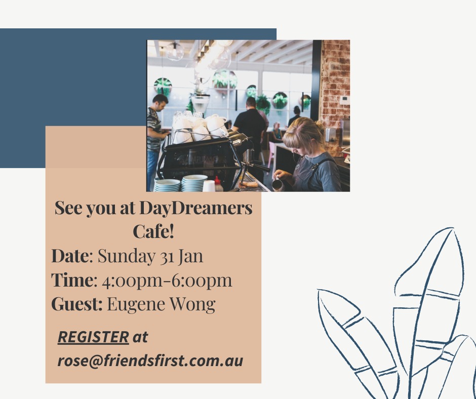 THIS SUNDAY is the 5th Sunday of the month, which means — We’ll be seeing you at Daydreamers Cafe! We have Eugene Wong joining us and talking about ‘culture’, the importance of it and how it shapes every area of our lives.